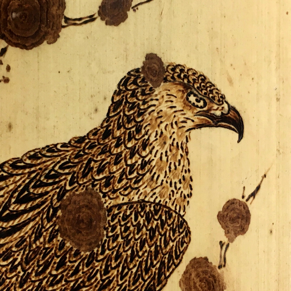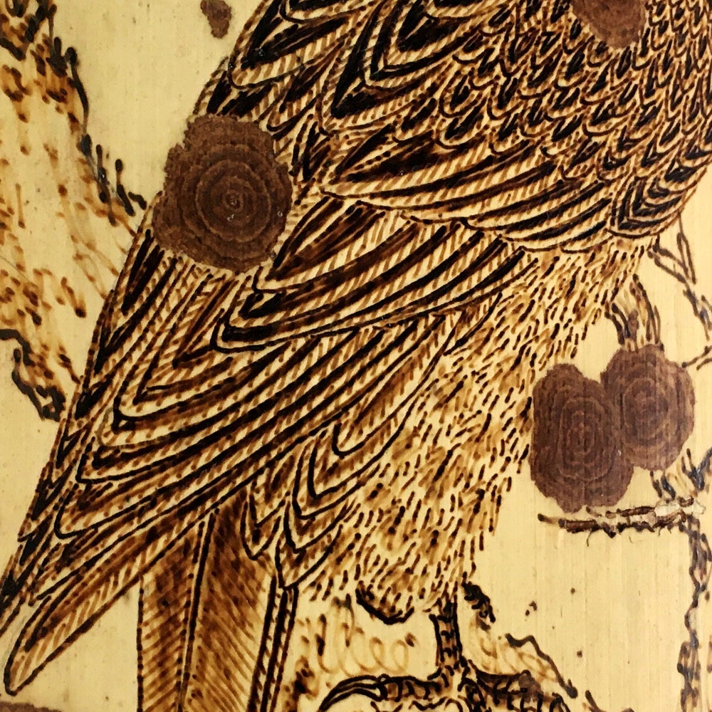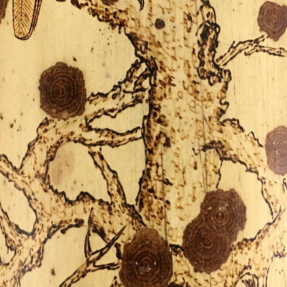Kỹ thuật: Kết hợp điêu khắc thủ công và thiêu họa (pyrography)