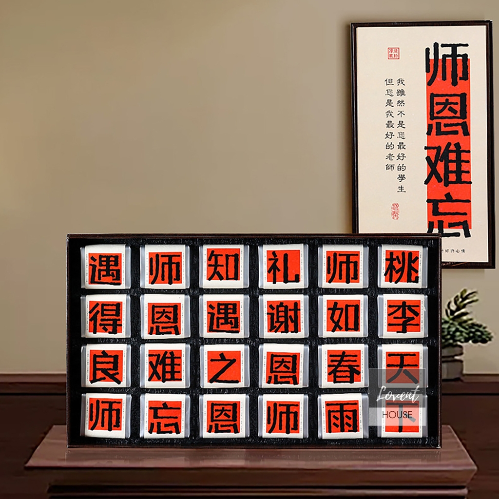 Mỗi viên trà khắc một chữ, ghép lại thành bài thơ Hán Việt ý nghĩa: