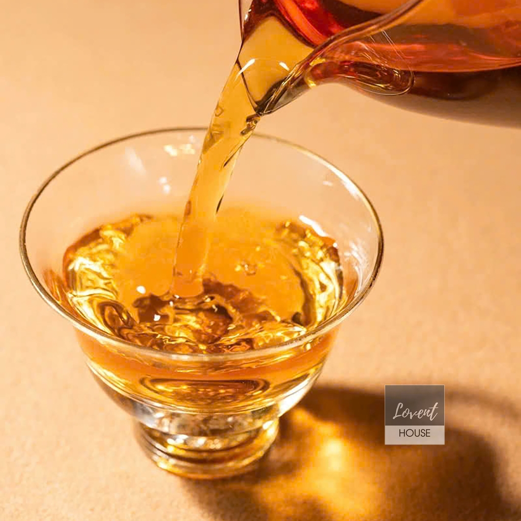 Trà có màu nước đỏ cam sáng trong, mượt mà như hổ phách. Khi đưa lên mũi, bạn sẽ cảm nhận được mùi thơm dịu dàng của hoa quế phảng phất trên nền vị trà chín, nhẹ khói, hơi giống mùi mạch nha nướng và mật ong.