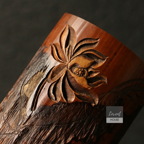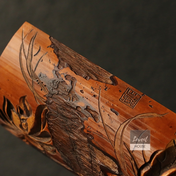 Ngày xưa, ở vùng Tây Nam Trung Hoa, người ta thường treo ngược tre lên bếp lò ngay trên nơi nấu ăn, sưởi ấm, hun thịt… Năm tháng trôi qua, khói bếp quyện cùng khói thời gian, thấm dần vào từng thớ tre. Những cây tre ấy, cháy âm ỉ bằng sự sống thường ngày, mang trên mình màu nâu đồng cổ điển, trầm mặc như vết son của thời gian.